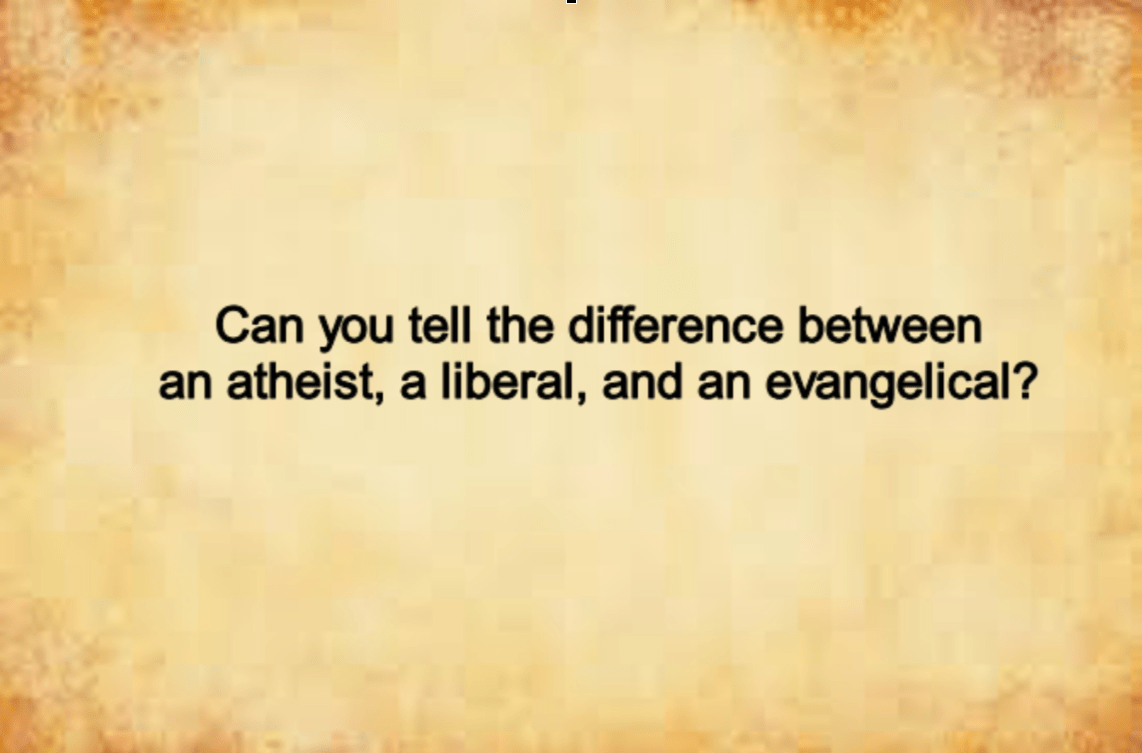 Can you tell the difference between an atheist, a liberal, and an evangelical?
